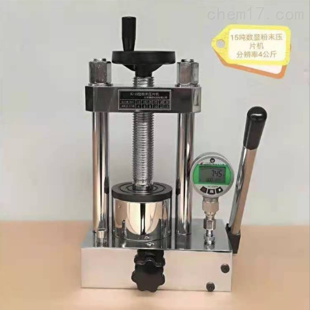 15吨数显表压片机作为红外分光光度计的附件,用于将溴化钾(KBr)、氯化钠(NaCl)等材料粉末压制成各种规格的试片,以便进行光谱分析,本压片机尤其适合于国外进口各种傅里叶红外光谱仪配套替代进口附件。同时它也适用于其它需要相应压力的工作场合。该机结构紧凑、重量轻、生压快、操作简单、方便安全。